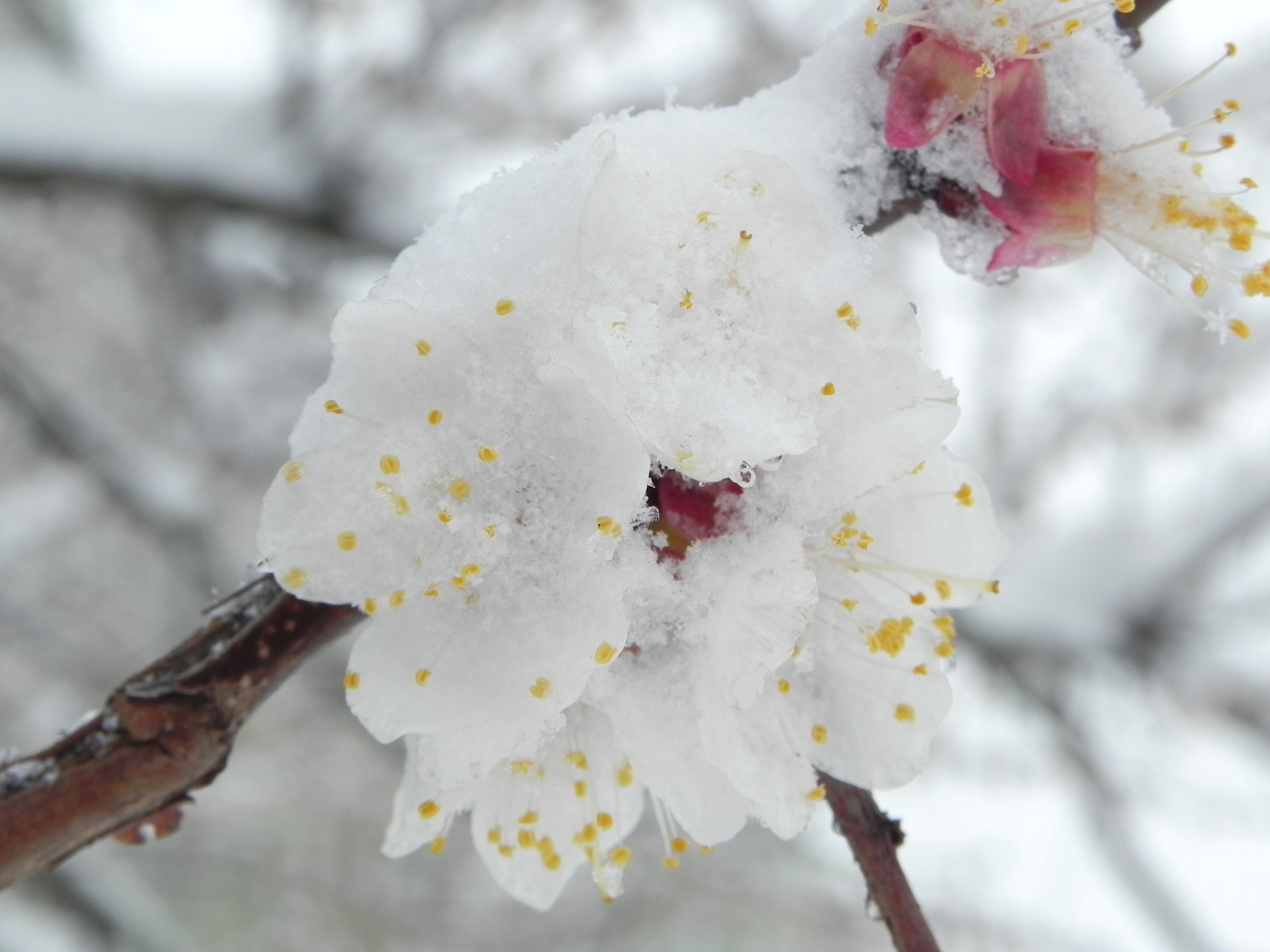 Цветущий абрикос под снегом, 29 марта 2014 года