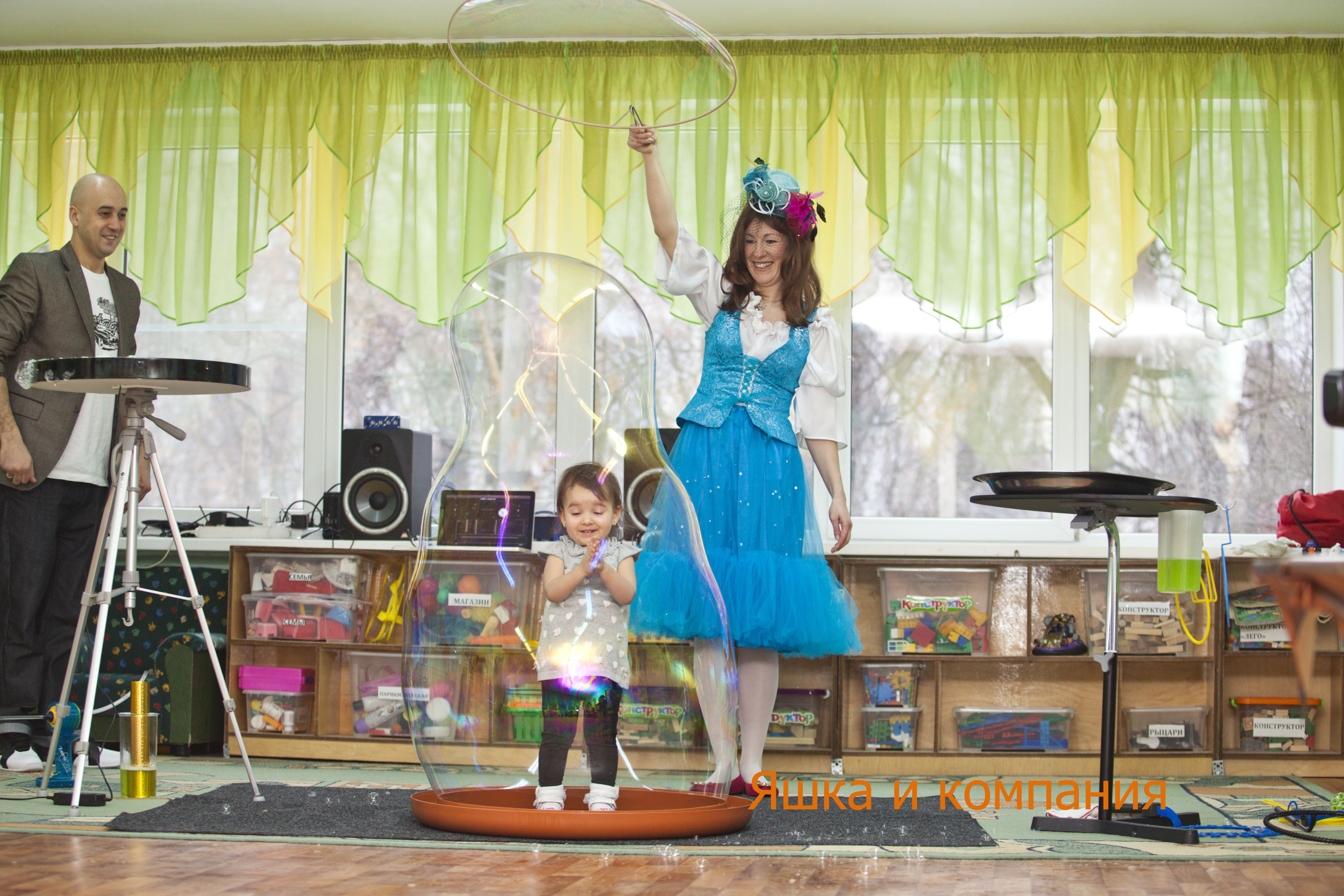 * Музыкальное сопровождение(Красивая музыка и мелодии) * Ковровое покрытие на пол * Круглые пузыри разного диаметра * Шлейфы, гусеницы * Пузырь в пузыре * Погружение в большой мыльный пузырь * Салют из мыльных пузырей * Торт для именинника на светящемся столе * Светящийся стол Продолжительность программы 35 мин