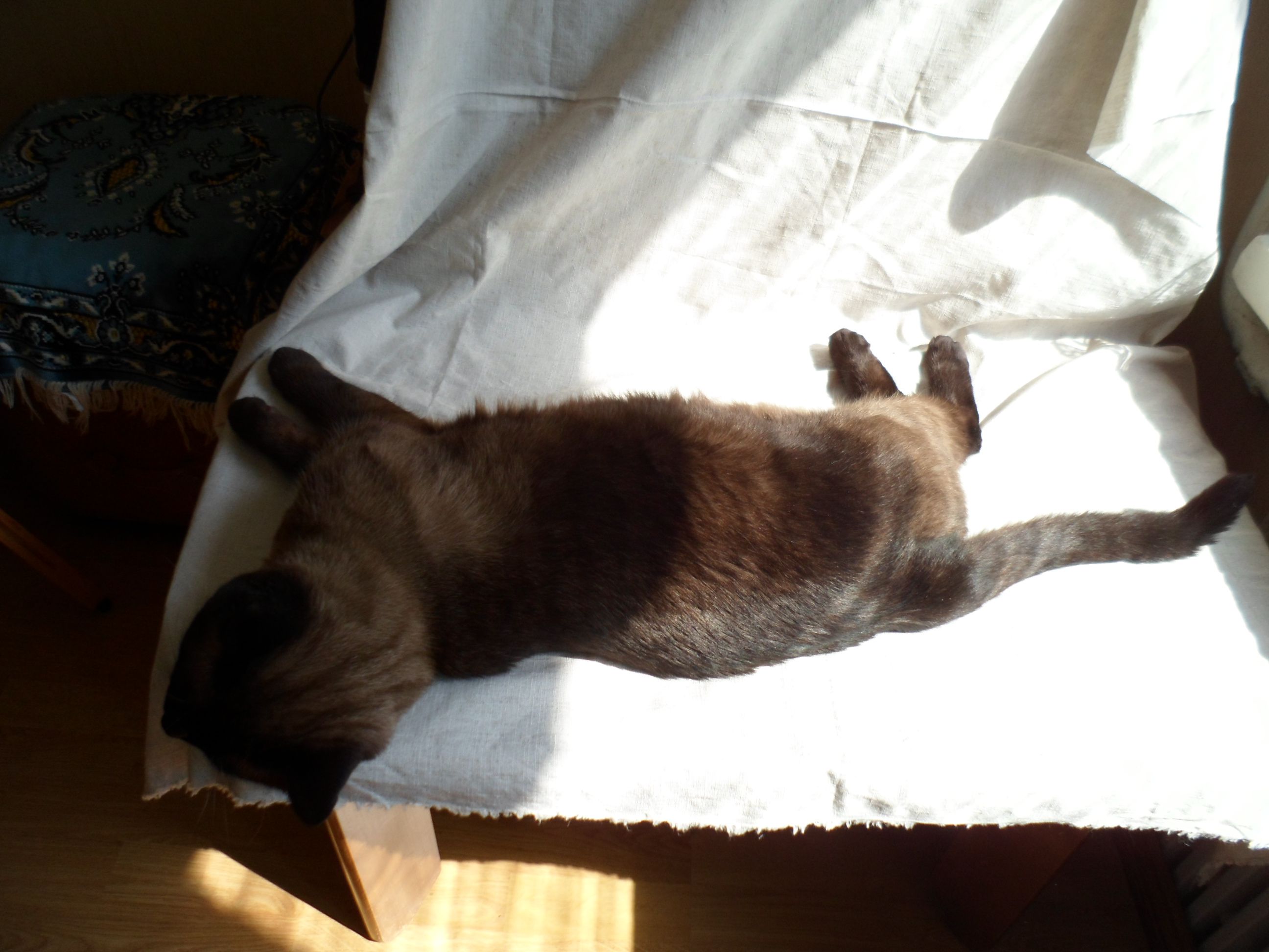 Не успела постелить драпировку под натюрморт, Ирбис уже занял место