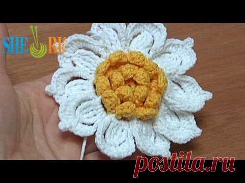 Crochet Flower with Ruffled Center and 10 Petals How-To Tutorial 31 - YouTube