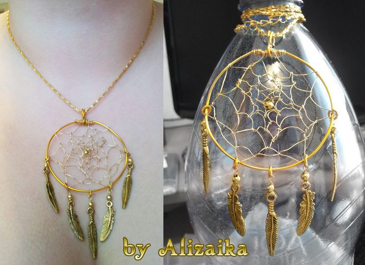 200 р. Подвеска "Золотой ловец снов" Материалы: алюминиевая проволока( 1, 0.3 мм), бисер, фурнитура Продается без цепочки! 5,5*9 см Красивая подвеска "Золотой ловец снов" идеально подходит почти к любому наряду. Отлично сочетается с моим каффом "Легкость".