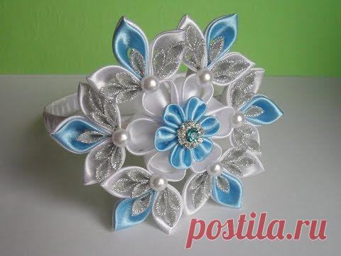 Новогодняя Снежинка . Ободок для волос Канзаши / Christmas Snowflake . Headband Hair Kanzashi - YouTube