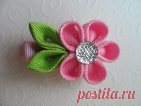 Милая заколка для волос Канзаши / Sweet hairpin Kanzashi - YouTube