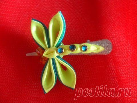 Заколка Стрекоза своими руками . Мастер класс канзаши / Master Class : Dragonfly kanzashy - YouTube