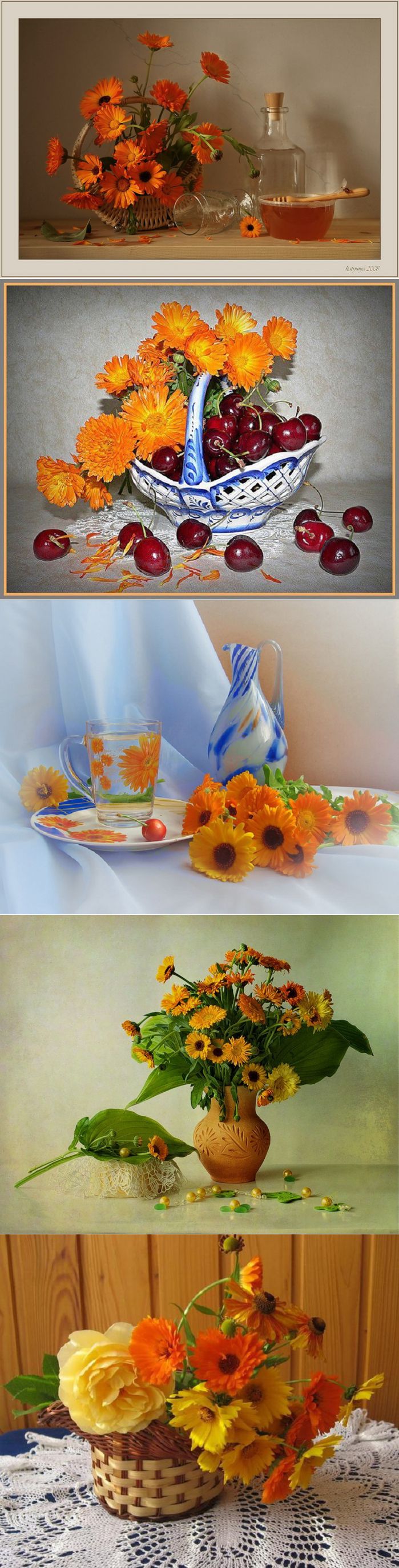 Натюрморты Календулы цветочки золотые. == .Люблю календулы цветочки золотые!