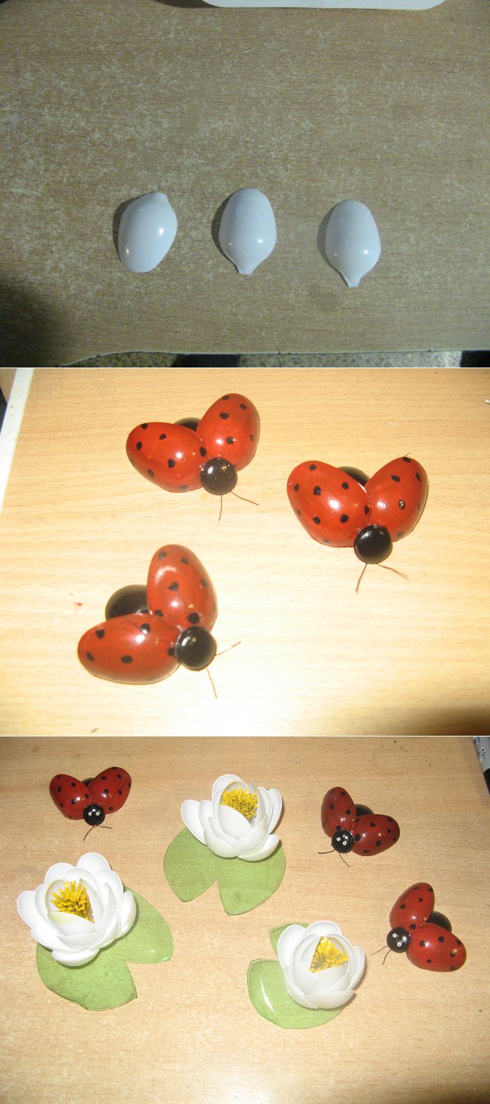 Божьи коровки из одноразовых ложечек..