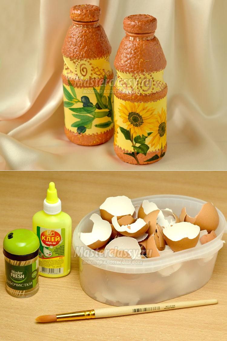 Декупаж бутылочки с яичным кракле. Мастер-класс с пошаговыми фото