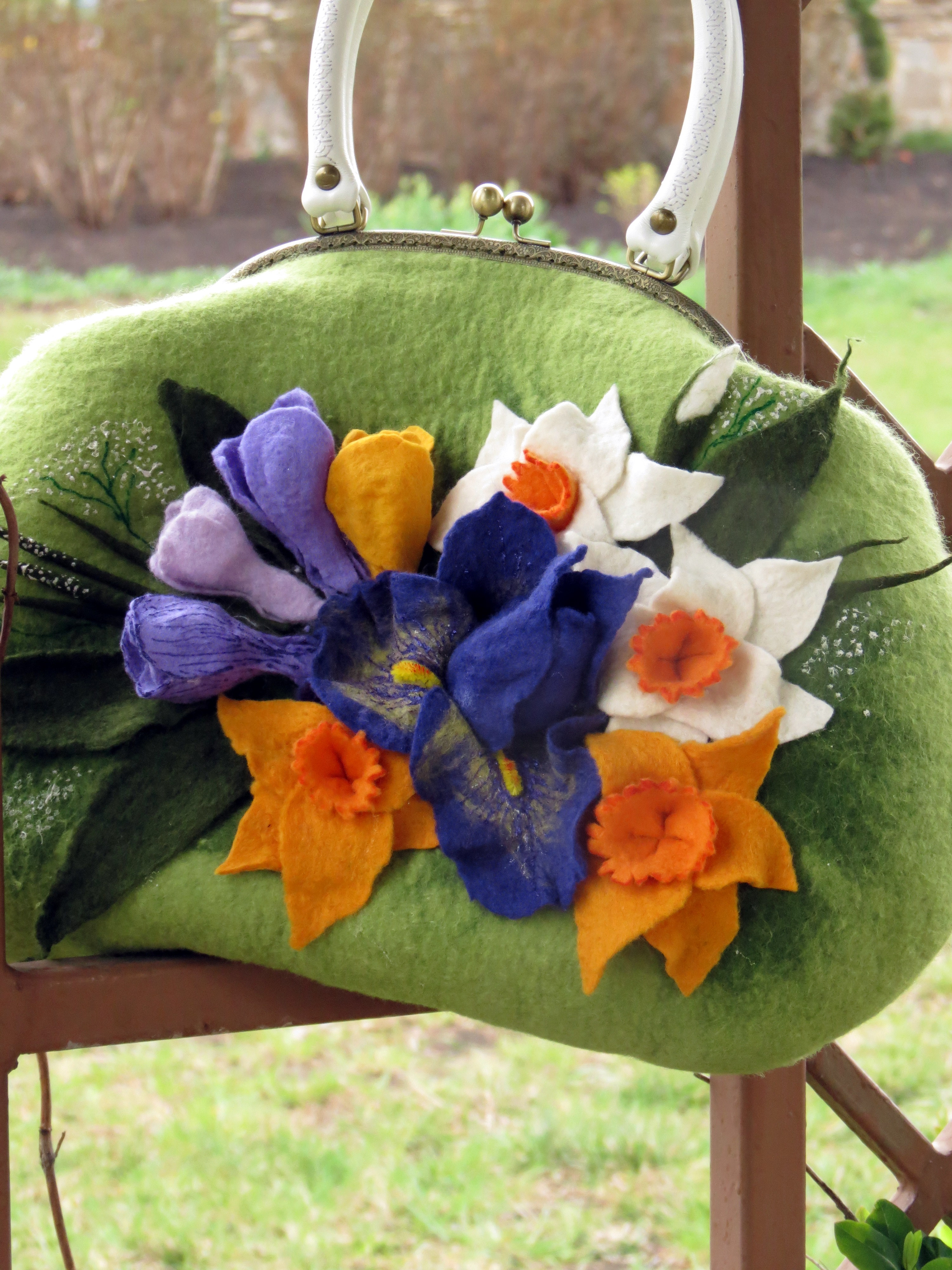 Комплект валяный "Мой весенний сад" Шерсть австралийского мериноса, шелк натуральный понже, Металлическая фурнитра, ручки натуральная кожа.
