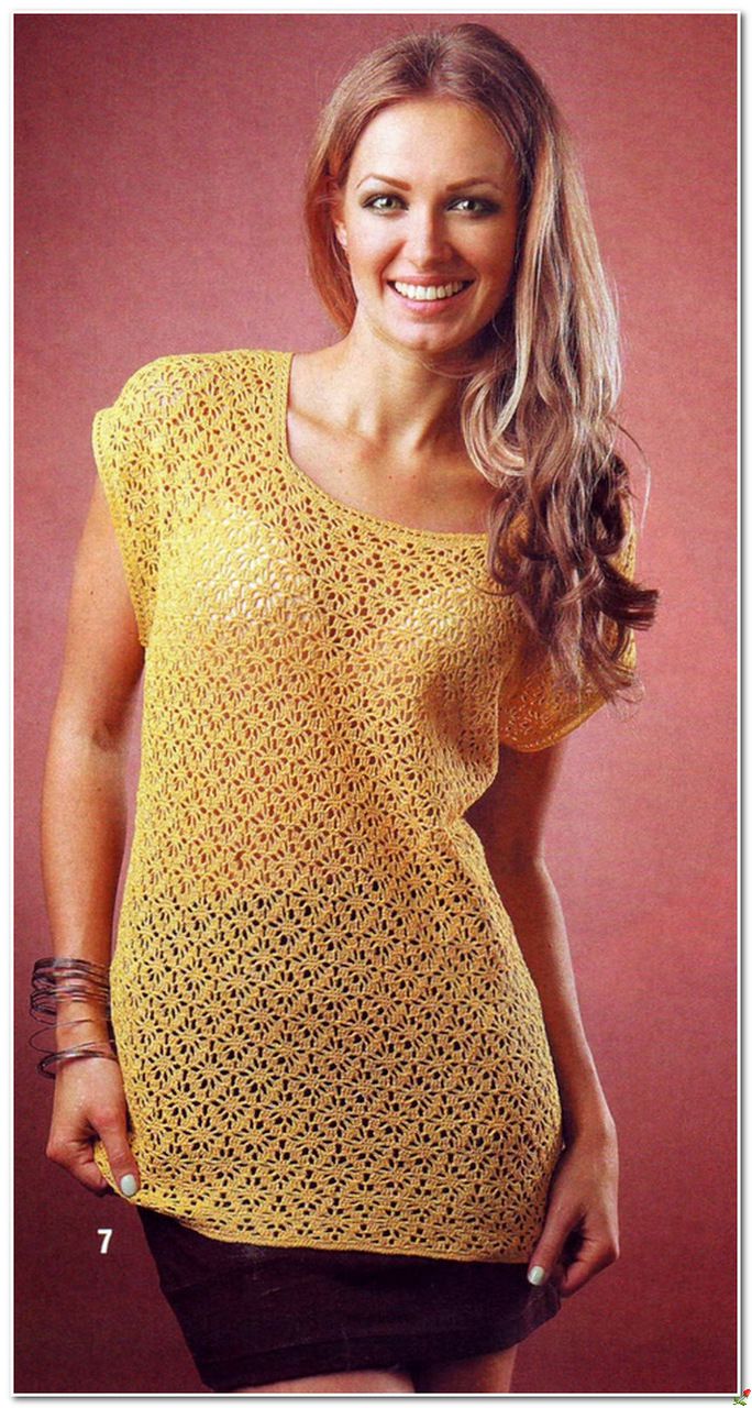 ЖЁЛТАЯ ТУНИКА ВЯЗАНАЯ КРЮЧКОМ..