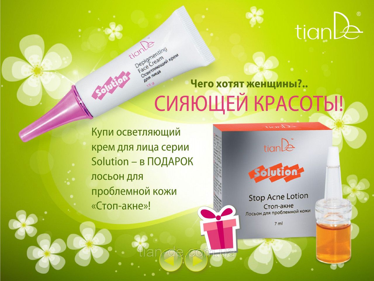 Купить Осветляющий крем для лица и в подарок лосьон для проблемной кожи "стоп акне" из той же серии Запорожье и Украине от компании "ТианДе"