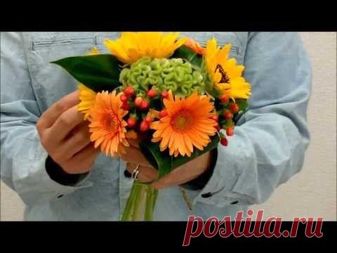 ラッピングまで花のトッププロが教える「可愛らしいヒマワリのウェディングブーケ制作」#4~How to make a bouquet - Hand tied flower bouquet~ - YouTube