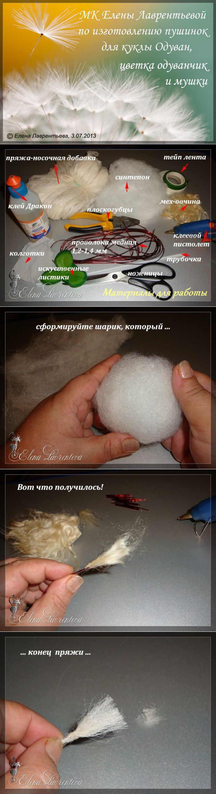 МК по изготовлению пушинок для кукол Одуван,цветка одуванчик и мушки от pawy (Е. Лаврентьева).
