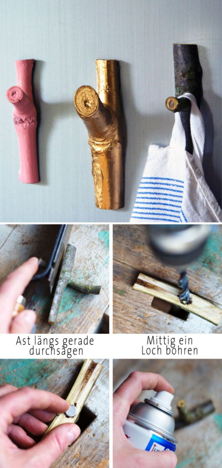 ВЕШАЛКИ из веток !.. Итак: ищем подходящие ветки, распиливаем посередине, сверлим отверстие для крепления на стену, и красим !.. // Декор стен