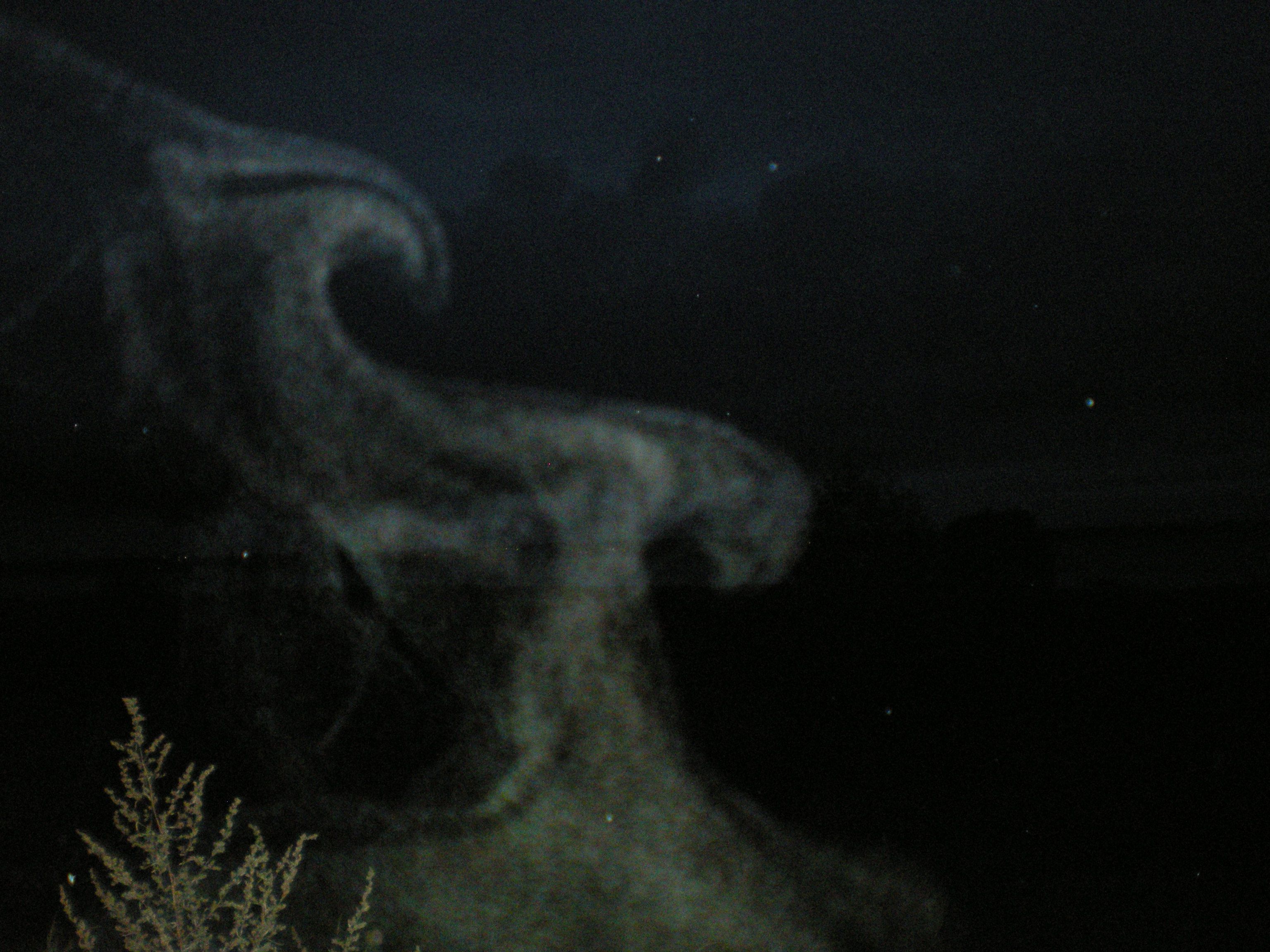 Снимок в сумерках Плещеева озера с дороги, напротив Синего камня. На снимке получилось, как мне кажется, что-то невероятное, похоже на огромную птицу. Визуально, при съемке не было видно.