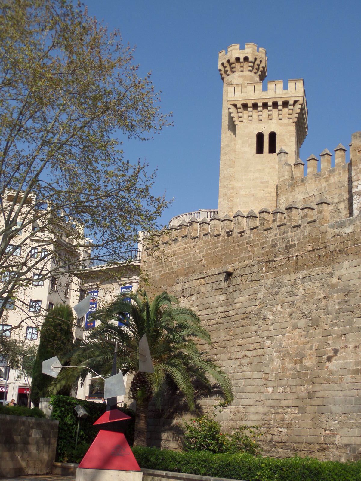Башня дворца Альмудайна в Пальма де Майорка. Сам дворец, где когда-то жили короли Майорки, сейчас является музеем. Старинный интерьер многих залов сохранен. Гобелены великолепны. В одном из залов в конце XIII века был подписан акт о капитуляции мавров испанским конквистадорам. С того времени Майорка является частью Испании.