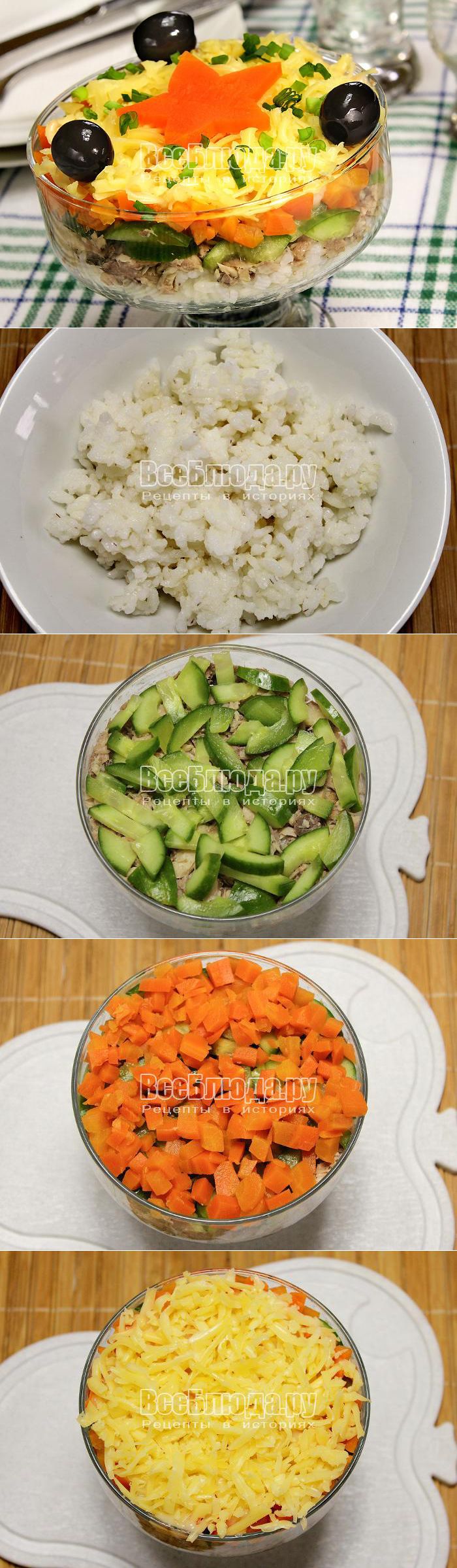 Слоеный салат из консервированной рыбы на 23 февраля, рецепт с фото | Все Блюда