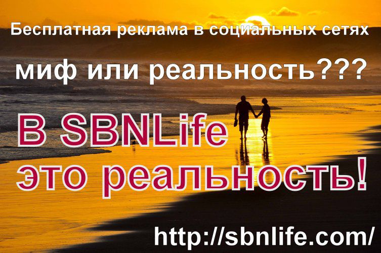 Бесплатная реклама в социальных сетях Здравствуйте! Недавно запустилась социальная бизнес сеть SBNLife которая предоставляет новые возможности общения и перспективу в будущем заработка, а так же у кого есть бизнес или сайт может размещать рекламу без какой либо оплаты. хотите получить подробную информацию о данной социальной сети?