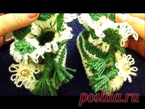 №9 Пинетки теплые для новорожденного малыша, связанные крючком/ Crochet baby's booties. - YouTube