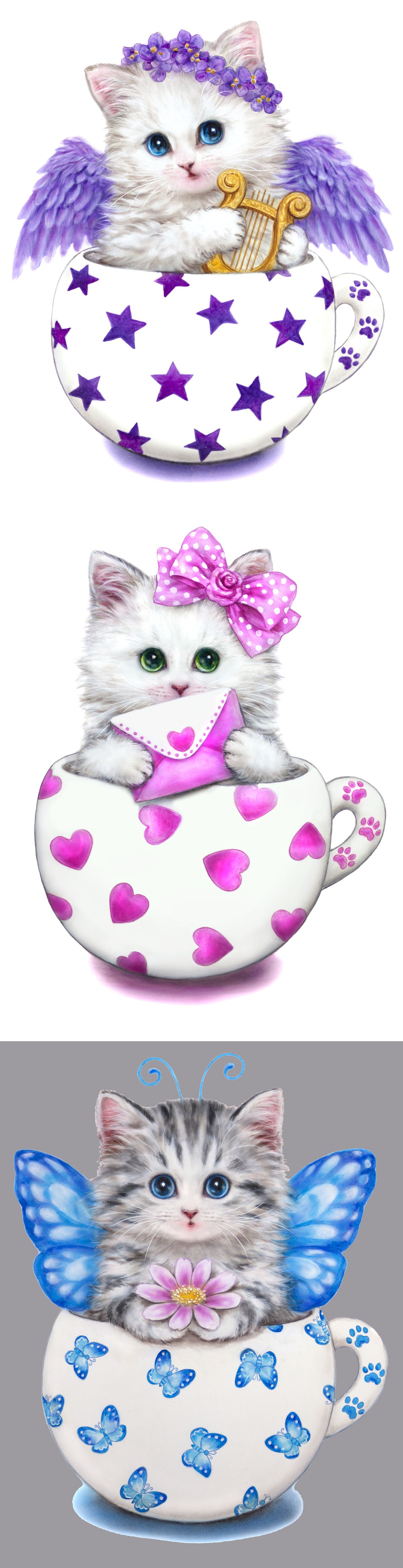 Кавайные котята на открытках Каёми Хараи .