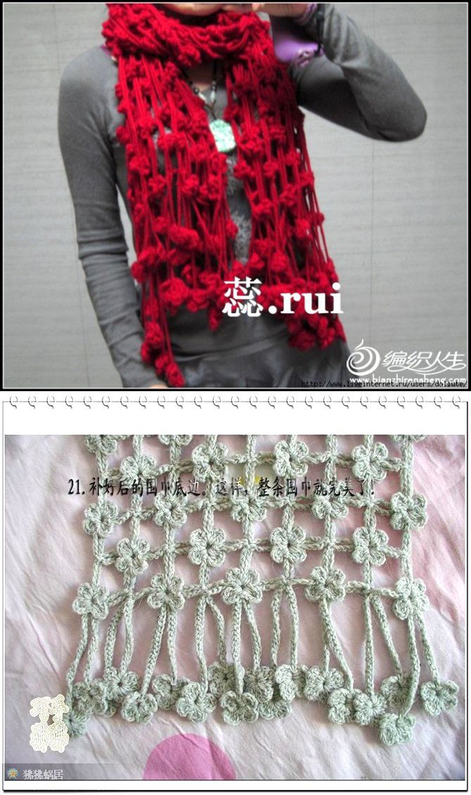 Шарфик "Висячие цветы", связанный крючком непрерывным вязанием. МК. /