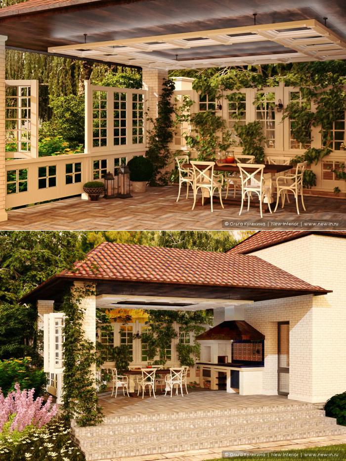 Терраса в гостевом домике, загородный дом, барбекю, летняя кухня | Идеи для ремонта