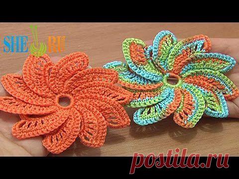 ▶ Вязание крючком цветка Урок 55 Вязаный цветок с десятью лепестками - YouTube