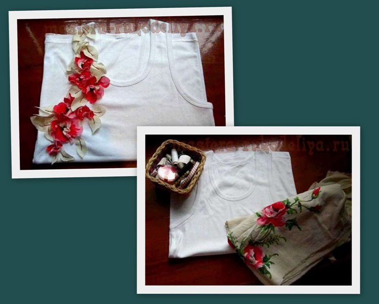 Декор майки цветами из платка (Екатерина Ш) / Декор / Модный сайт о стильной переделке одежды и интерьера