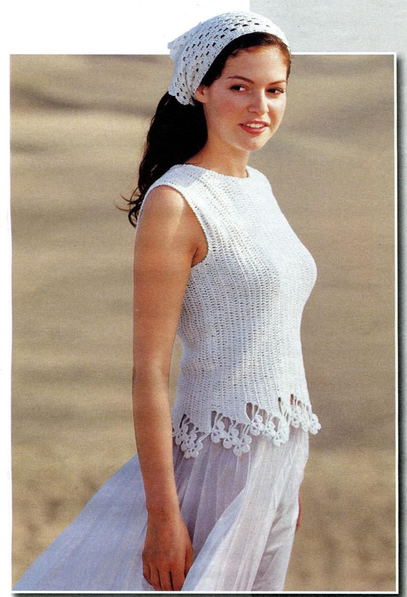 Топ, дополненный эффектной окантовкой с цветочным узором по нижнему краю, и бандана, вязаные крючком | петелики