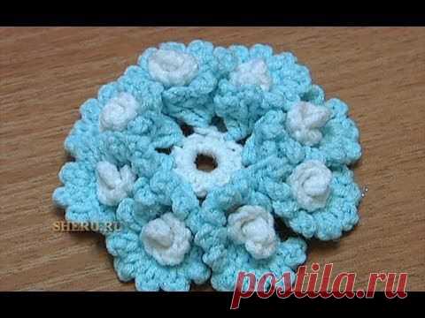 Вязание крючком Цветка Урок 23 Как связать Цветок со спиральками в лепестках - YouTube