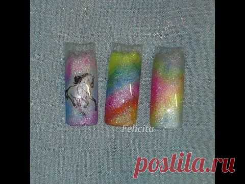 Растяжка сухими пигментами, на гель-лак или гель. - YouTube