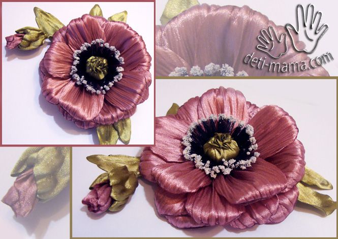 Цветы из лент своими руками. Мак. | Журнал для мам и детей