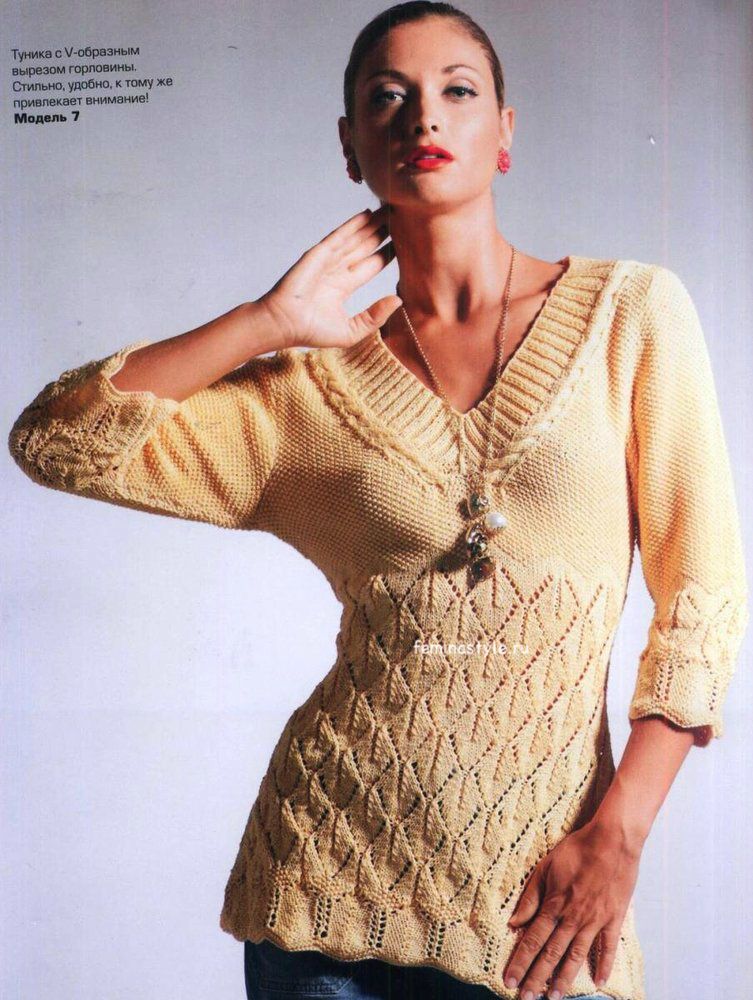 Вязание спицами желтой туники с V - образным вырезом / Рукоделие / Домоводство / Женские секреты / Женский стиль