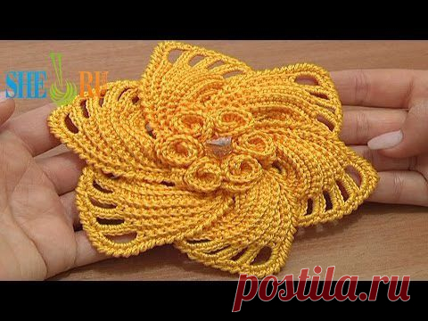 ▶ Вязание крючком Урок 59 Часть 2 из 2 Цветок с шестью большими лепестками и спиральками в центре - YouTube