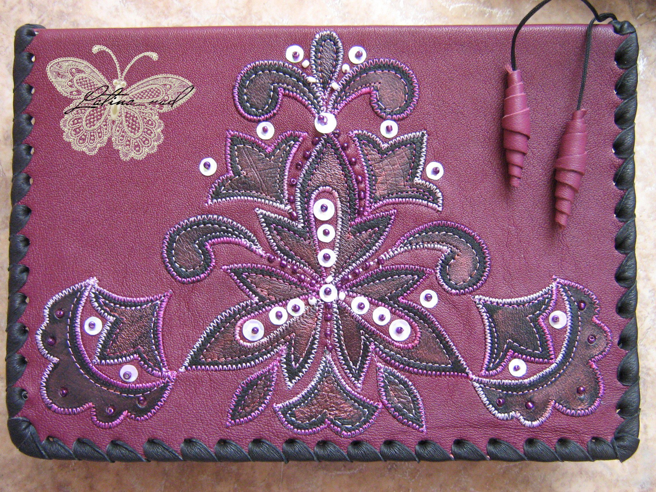 Обложка для книг из натуральной кожи, декор декоративная строчка, аппликация, бисер, пайетки.