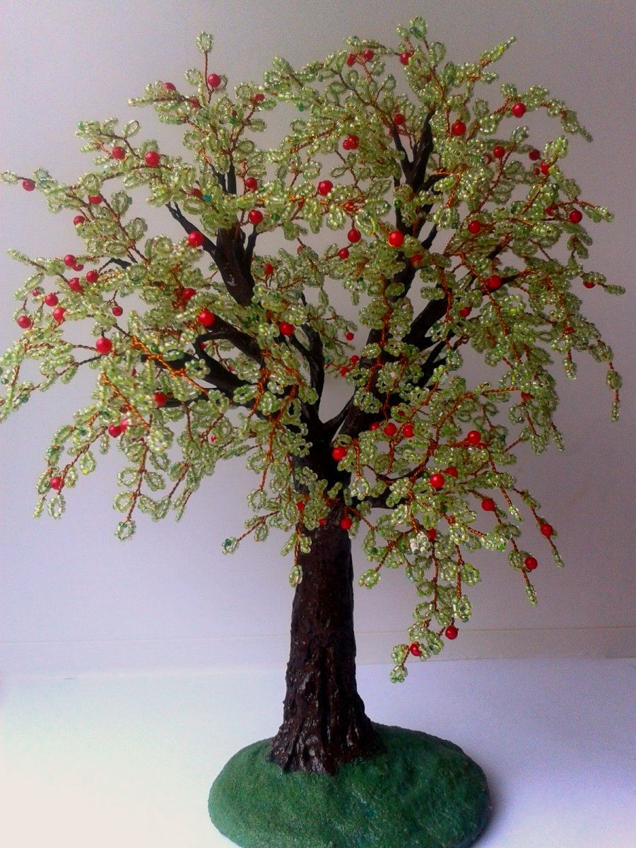 Яблоня . Высота 27см . Цена 1350 р. Крона - бисер и бусины . Ствол и подставка гипсовые.