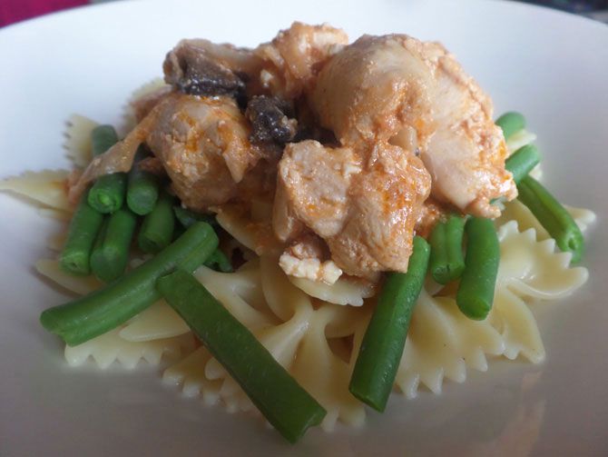 Рецепт на выходные: Куриная грудка с шампиньонами в пряном томатном соусе с брынзой.