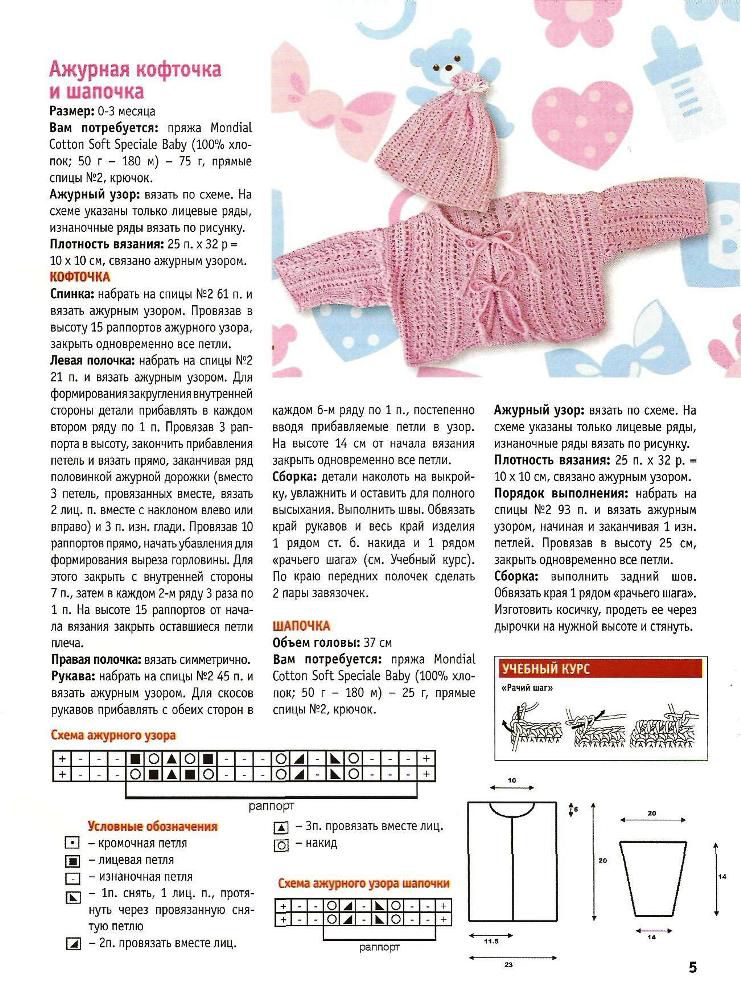 Ажурная кофточка и шапочка | Вязание спицами, крючком, схемы вязания