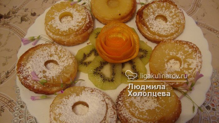Слойка с ананасом, рецепт пошаговый от Лиги Кулинаров. Рецепт слойки с ананасом, рецепты Лиги Кулинаров.