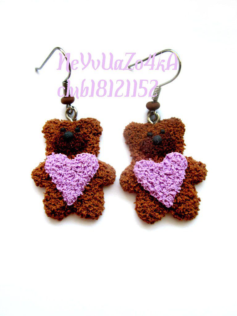 серьги-мишки)полностью ручная работа. Материал:полимерная глина,металлическая фурнитура под серебро.цена:250 р.