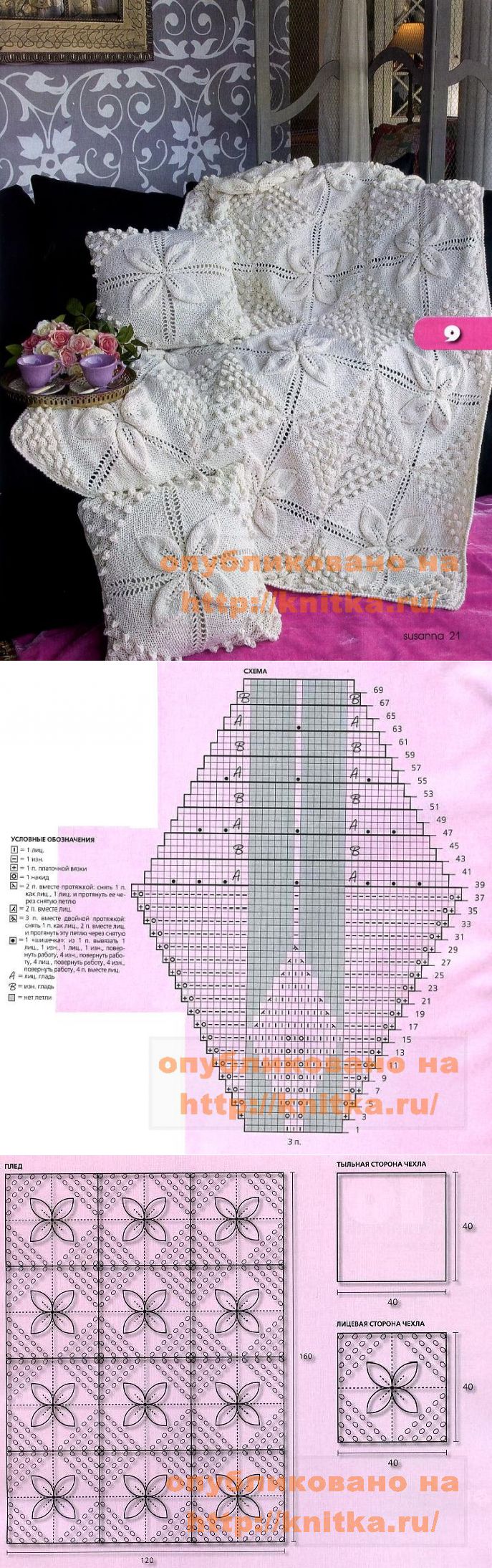 Плед и чехлы для подушек из рубрики Вязание для дома. Вязание спицами модели и схемы на kNITKA.ru