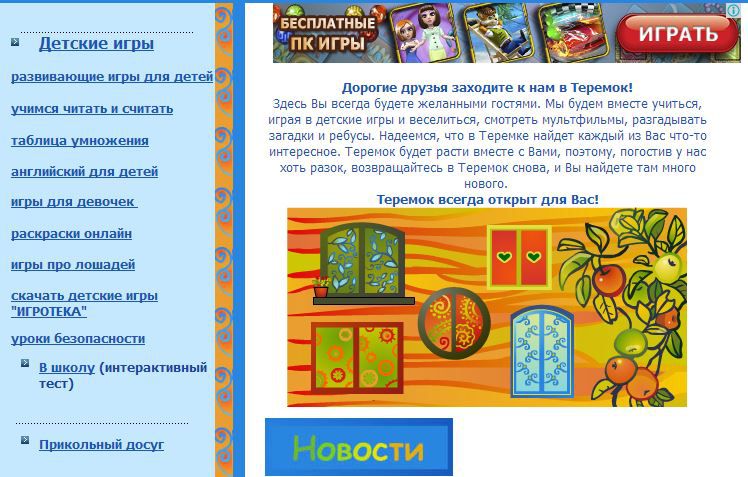 Детские игры в Теремке: развивающие игры для детей, раскраски онлайн, игры для девочек, уроки безопасности и др. --- играть онлайн