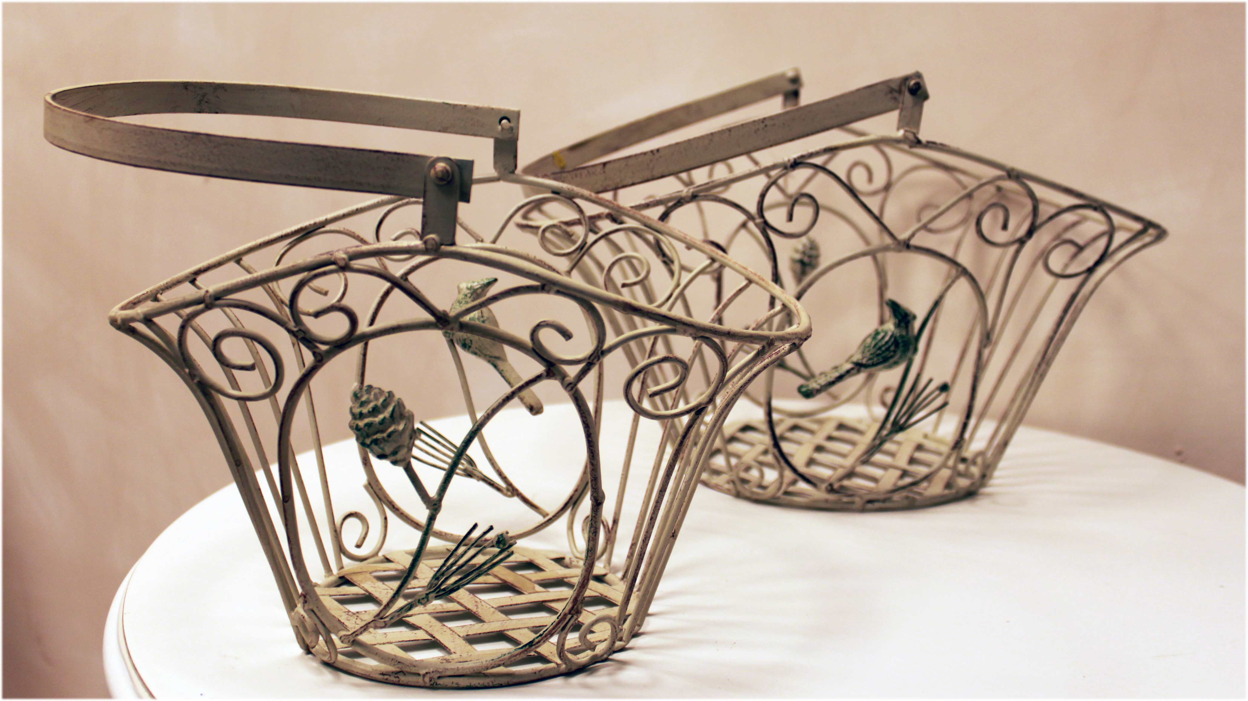 Корзины плетеные и ажурные металлические белые и цветные в стиле Прованс и Кантри для дизайна интерьера квартиры, дома, дачи, кухни, столовой, спальни и гостиной, а также для ресторанов, магазинов, гостиниц и баров можно недорого купить в интернет магазине Уголок Прованса в Москве