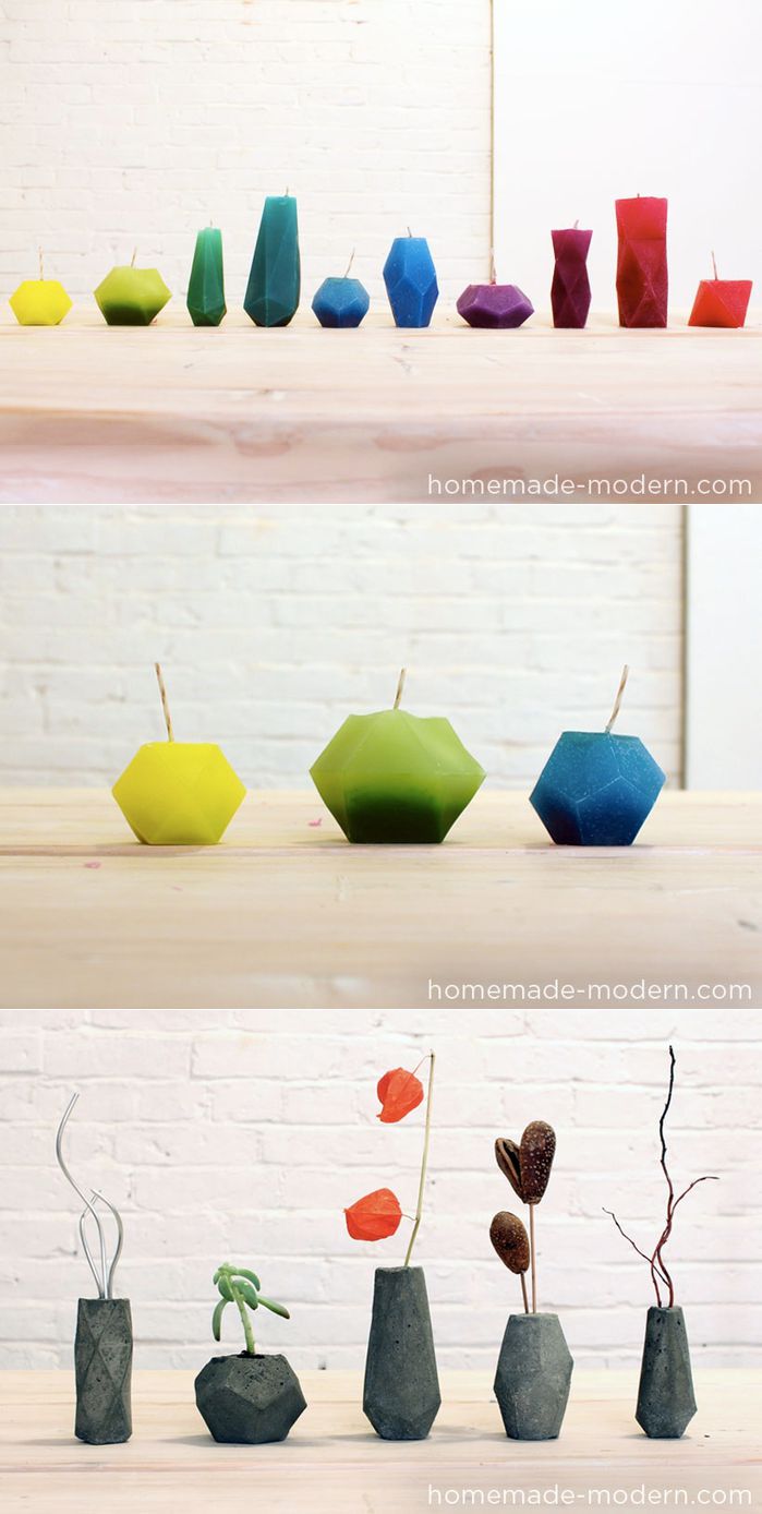 Свечи и гипсовые вазочки геометрической формы. Шаблоны и мастер-класс.