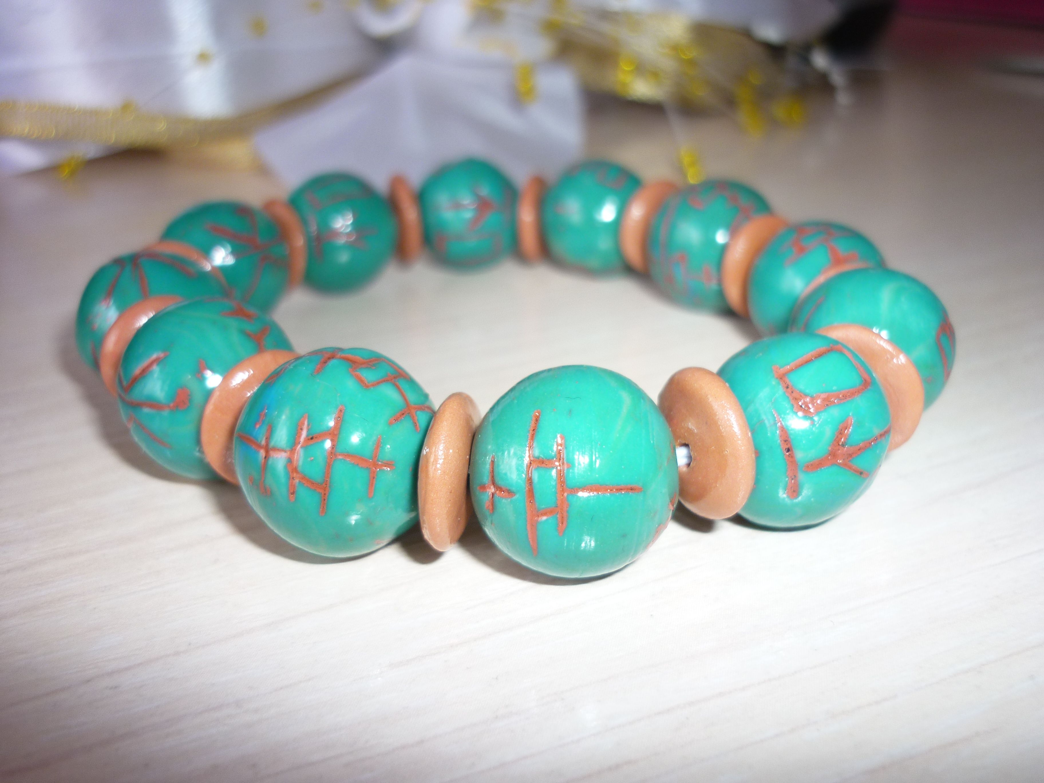 Браслетик из полимерной глины на удачу.На каждой бусине-иероглиф любви,счастья,удачи