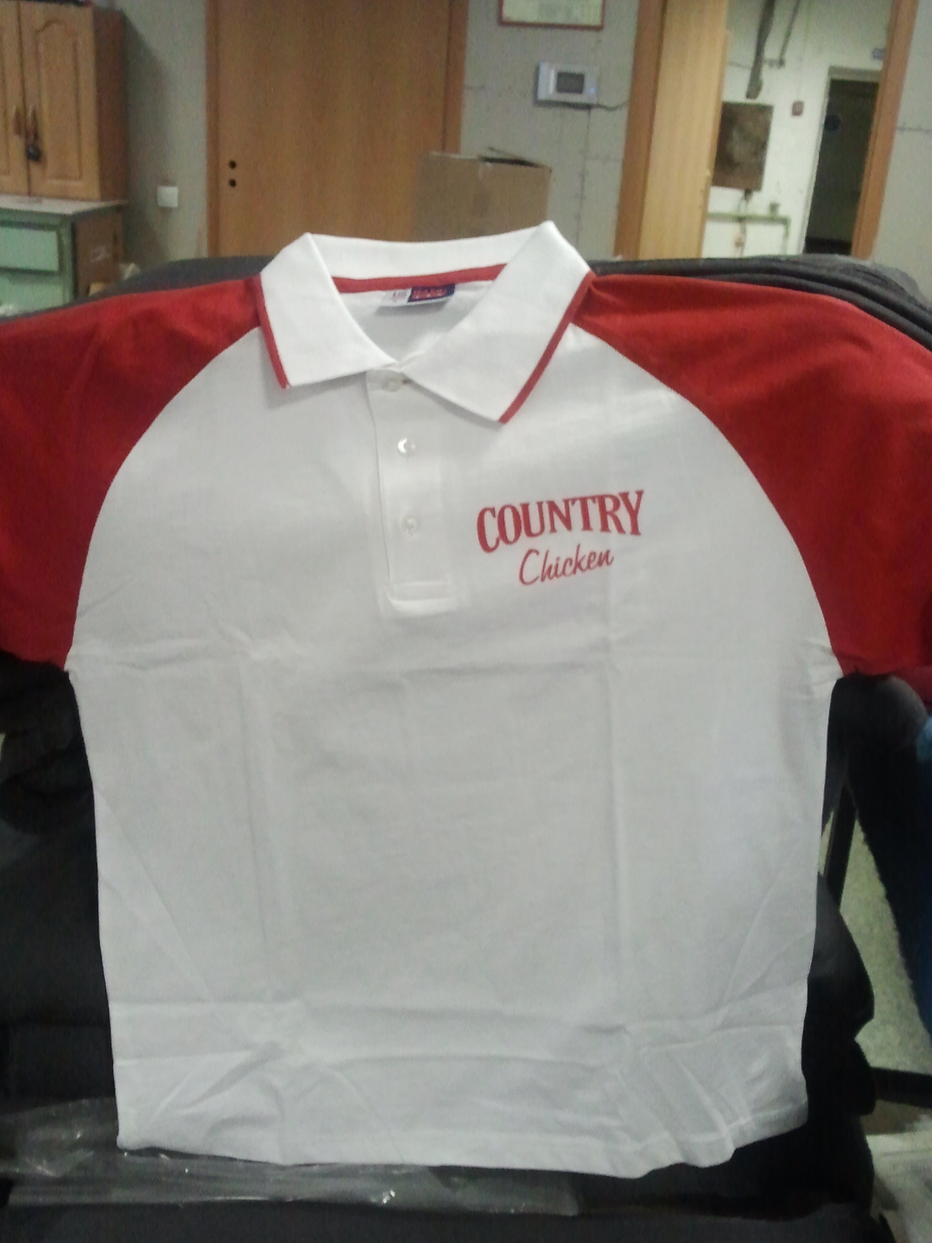 Печать на поло "Country Chicken". РУБАШКА ПОЛО "SYDNEY" МУЖСКАЯ БЕЛЫЙ/КРАСНЫЙ. Джерси, 100% хлопок. 180 г/м2 Рукава реглан. Воротник связан резинкой 1х1. Планка с тремя перламутровыми пуговицами.Белый кант на рукавах.Боковые разрезы. Контрастная внутренняя отделка воротника. Цена - 566 руб./шт.