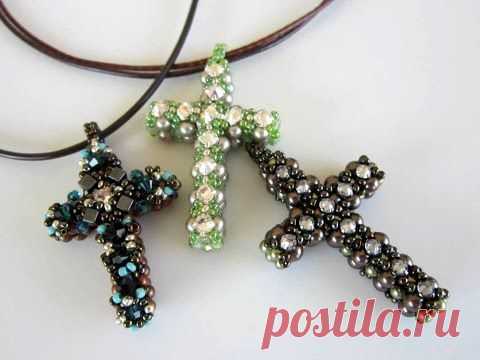 ▶ Beaded Cross . Крестик из бисера и жемчуга. Квадратное плетение. - YouTube