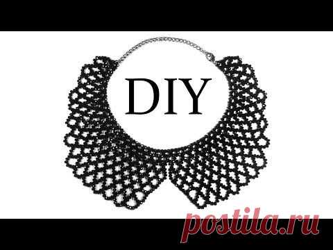 ▶ DIY: How to make beaded necklace (collar) / Как сплести воротник из бисера (бусин) "Сеточка" - YouTube
