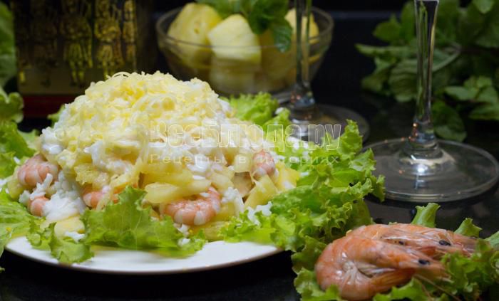Рецепт салата с креветками, ананасами, яйцами, рецепт с пошаговыми фото | Все Блюда
