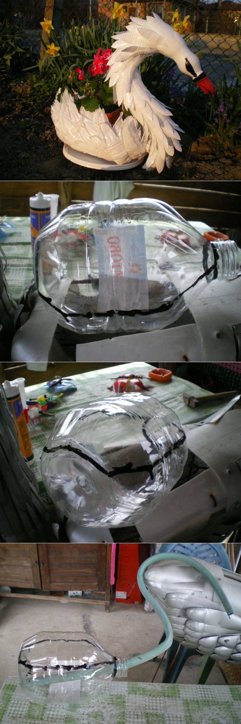 Лебедь кашпо из пластиковых бутылок.Мастер класс.