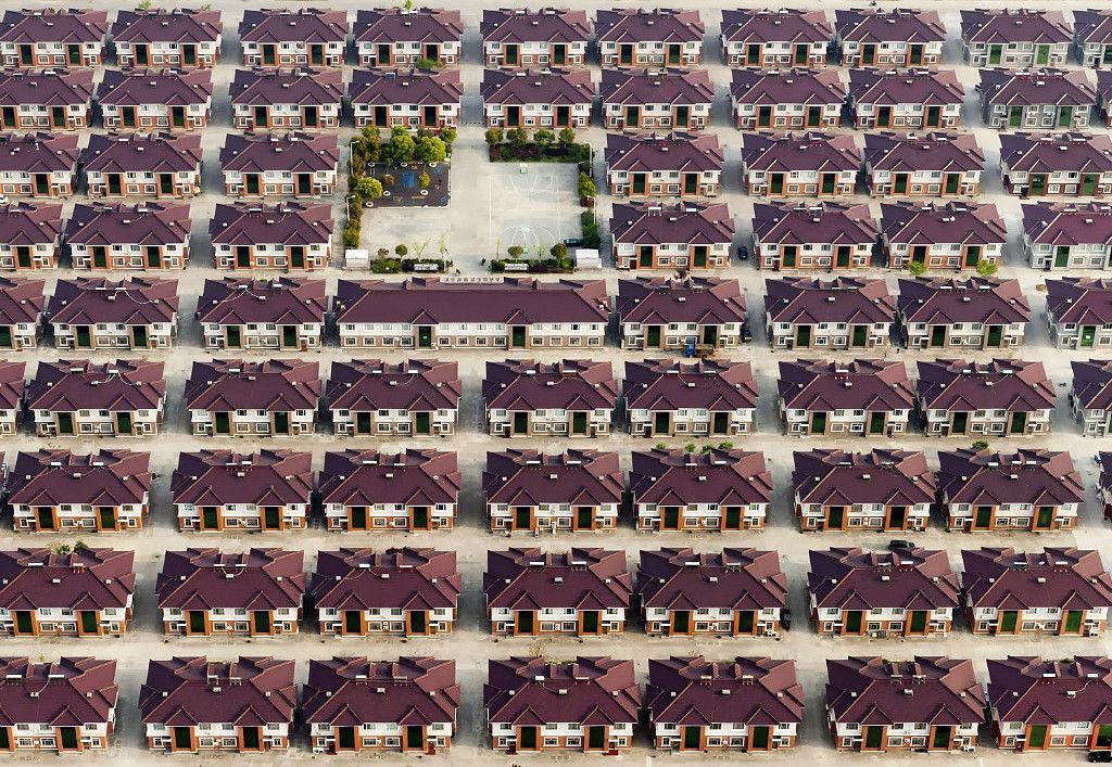 Китай, провинция Цзянсу, ряды однотипных домов с детской площадкой посередине